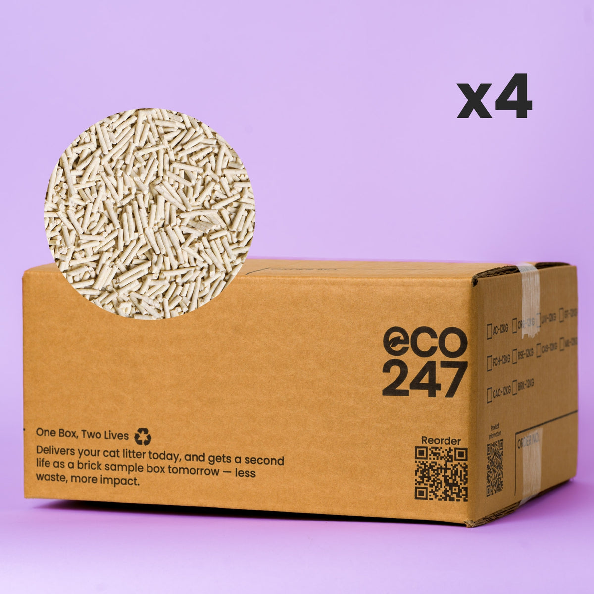 Pea Husk Cat Litter 4 x 12kg Boxes | 10 months 1 Cat